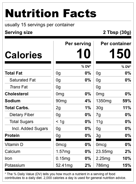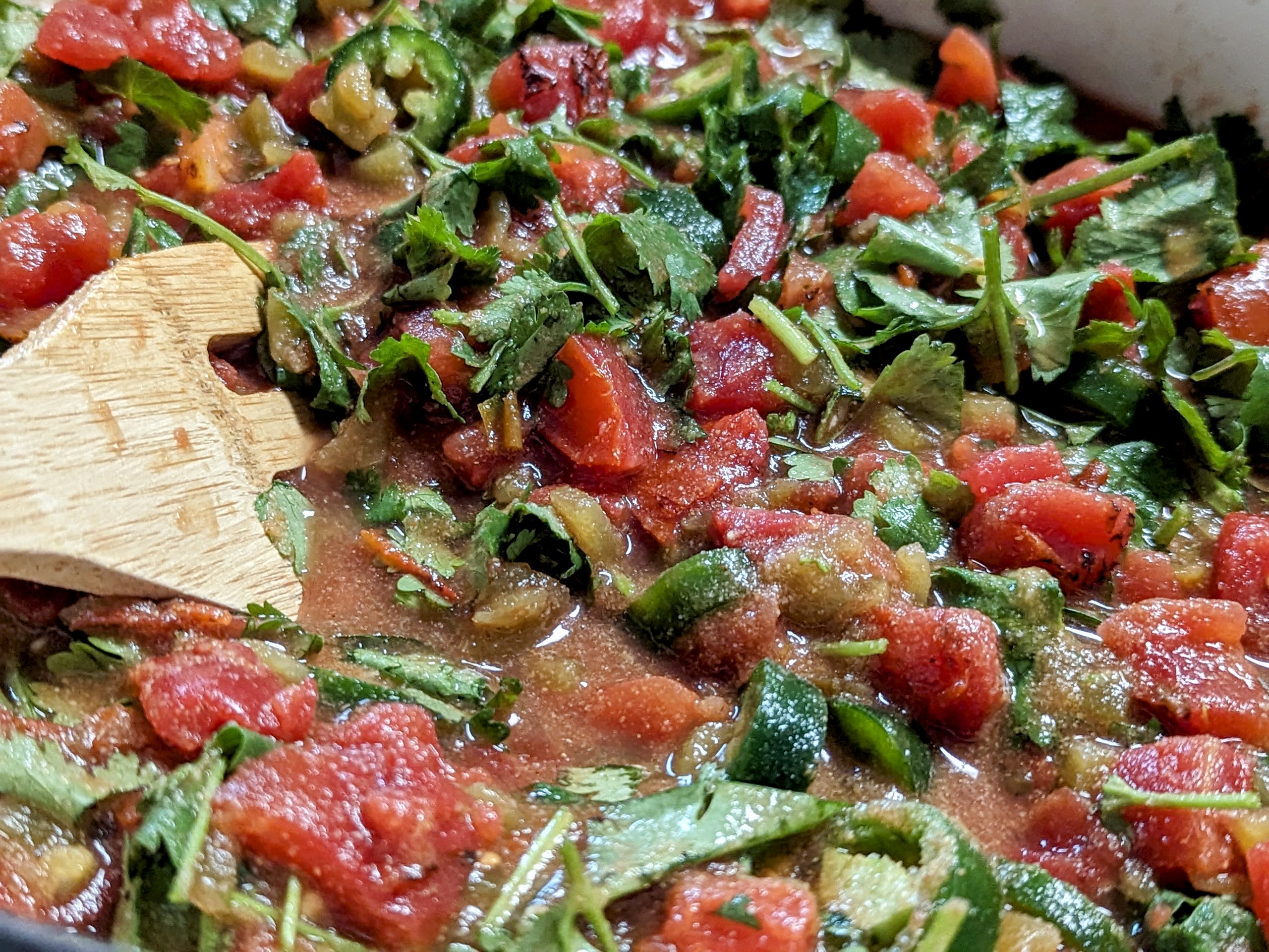 Tomatoes, Cilantro, Jalapenos, Green Chiles, Garlic Powder, Onion Powder, Lemon Juice, Salt, Spices, Red Wine Vinegar